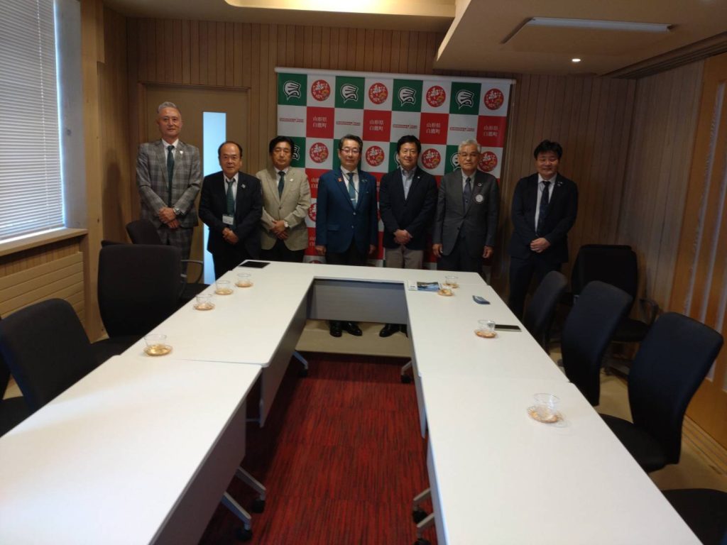 白鷹町役場への表敬訪問では、出張中の町長に代わり副町長の田宮様との懇談となりました。ガバナーも白鷹に由縁があるとの事、西村山の病院移転の話、町の管理病院の経営の大変さなど医師としてのガバナーとも様々話し合えたようで、とても有意義な表敬訪問になりました。