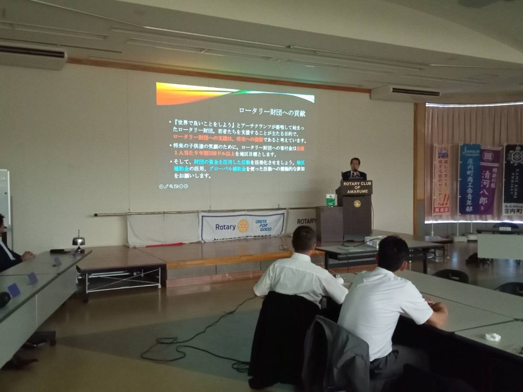 引き続き開催されたガバナー公式訪問例会では、小松ガバナーメッセージの「良い事をしよう。地域で世界で、未来のために。」が紹介されました。世界中で格差拡大と分断が発生