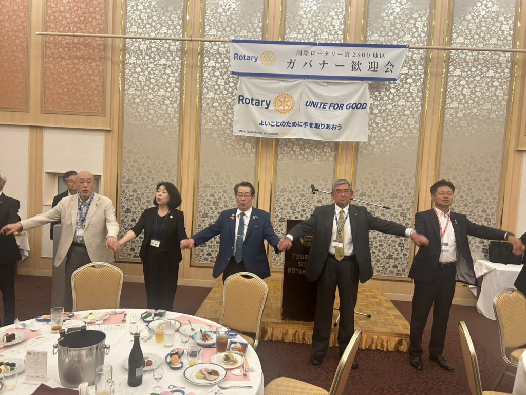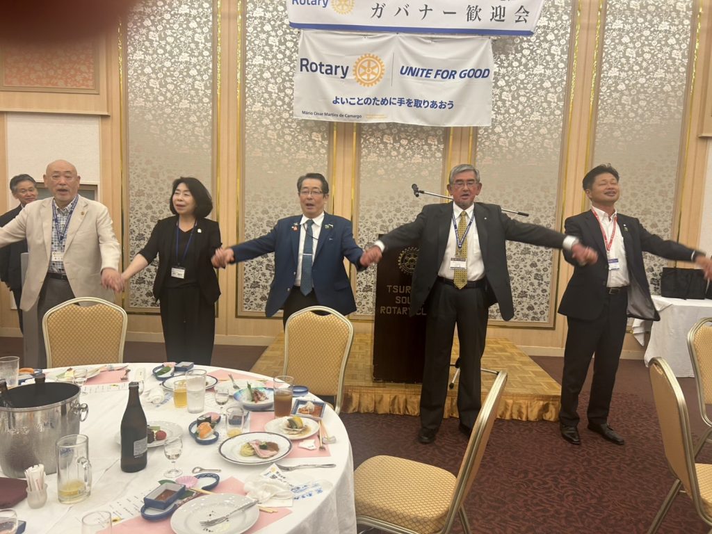 2025年8月6日(水)東京第一ホテル鶴岡に小松栄一ガバナーをお迎えして、鶴岡RC、鶴岡西RC、鶴岡東RC、鶴岡南RCの鶴岡4RC合同例会後、18時30分から鈴木孝純鶴岡西RC会長の歓迎のご挨拶があり、田村勝鶴岡東RC会長の乾杯で小松栄一ガバナー歓迎会が始まりました。当日は各クラブ会員及び米山奨学生3名も含め61名で小松ガバナーを歓迎いたしました。