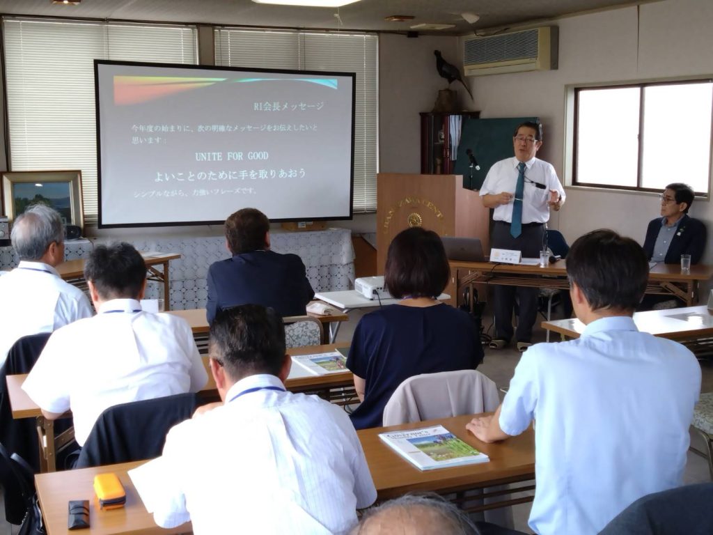 RIは、「年次テーマ、ロゴマーク」をなくし、会長メッセージとして「UNITE FOR GOOD:よいことのために手を取りあおう」としたこと、「友情」と「信頼」によって有意義なパートナーシップを築き、世界的な課題を解決へと導いていくこと、また、「会員増強、ポリオ根絶、平和」を優先事項としていくことを強調されました。