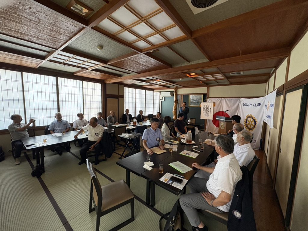 8月25日(月)当クラブ例会場「食楽亭 旭屋」に小松栄一ガバナー、田中ガバナー補佐、寒河江RC誉田前年度会長をお迎えしてガバナー公式訪問例会を開催しました。例会開始前に、小松ガバナー、田中ガバナー補佐、寒河江RC 誉田前年度会長、当クラブの松田会長、伊藤幹事、須藤エレクトが出席して会長幹事会が行われました。松田会長より当クラブの年度計画や方針を説明させて頂き、伊藤幹事より各委員会の活動計画について説明、小松ガバナーから具体的で適切なアドバイスを頂戴いたしました。またこれからの課題などについて教えて頂き改めて学ぶ機会となりました。